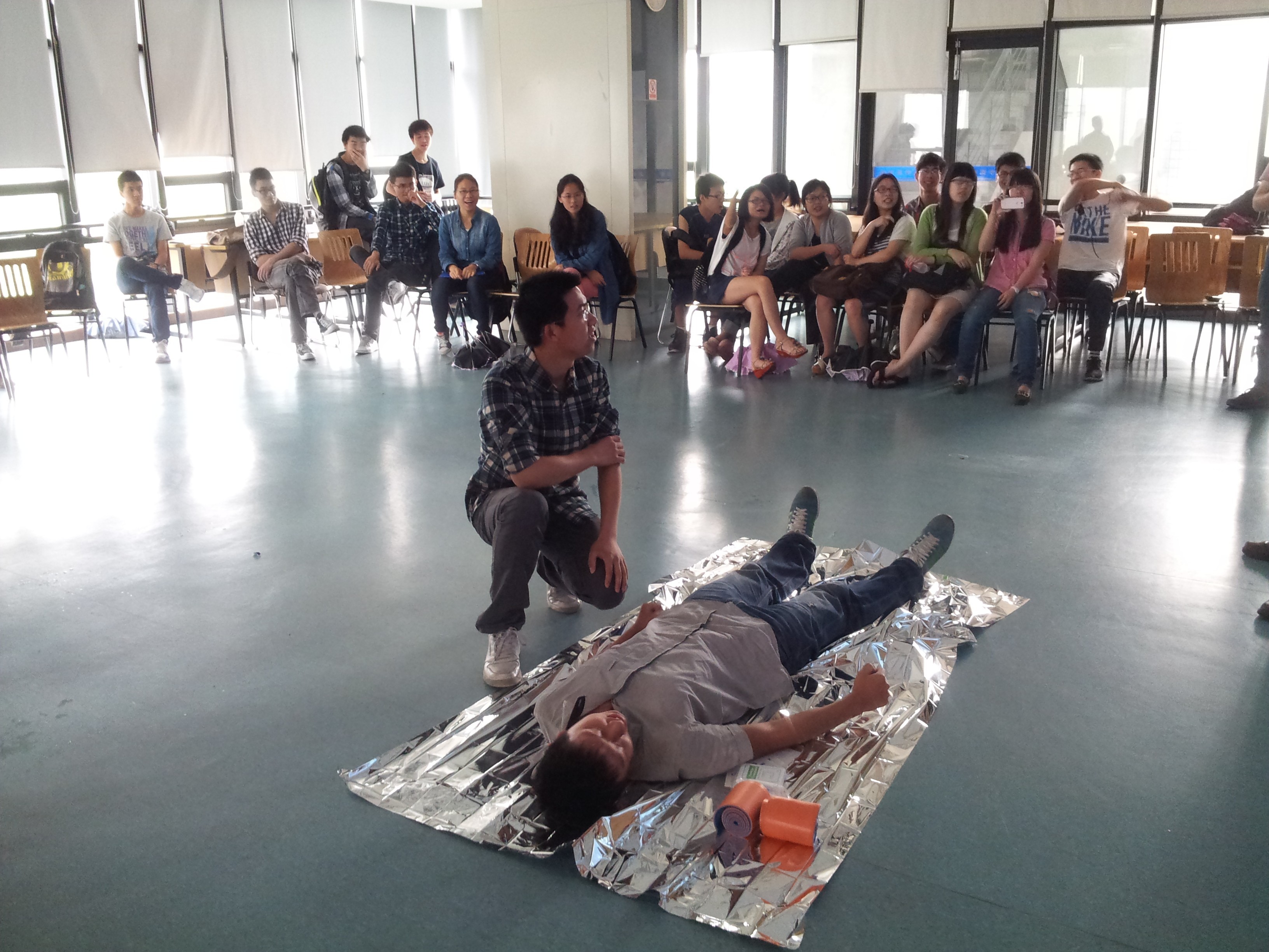 此次培训主要讲述了遇险环境的评估和遇险的处理应对策略,以及抢救及时的重要性。之后还对急救步骤做了个详细地罗列。经过了一个多小时的讲解,同学们对院前急救都有了深刻地了解。最后,培训还进行了模拟操作示范以及胸部按压的练习。