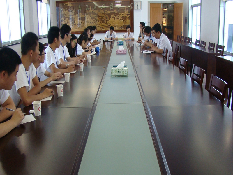 在简短的参观之后,江山人民医院院长郑逸华、吴副院长、郭副党委主任等院领导接见了同学们。他们介绍了江山人民医院近几年的发展现况,无论是从医疗设备、承担课题,还是服务患者的数量来看,医院都取得了卓越的成绩和巨大的荣誉。