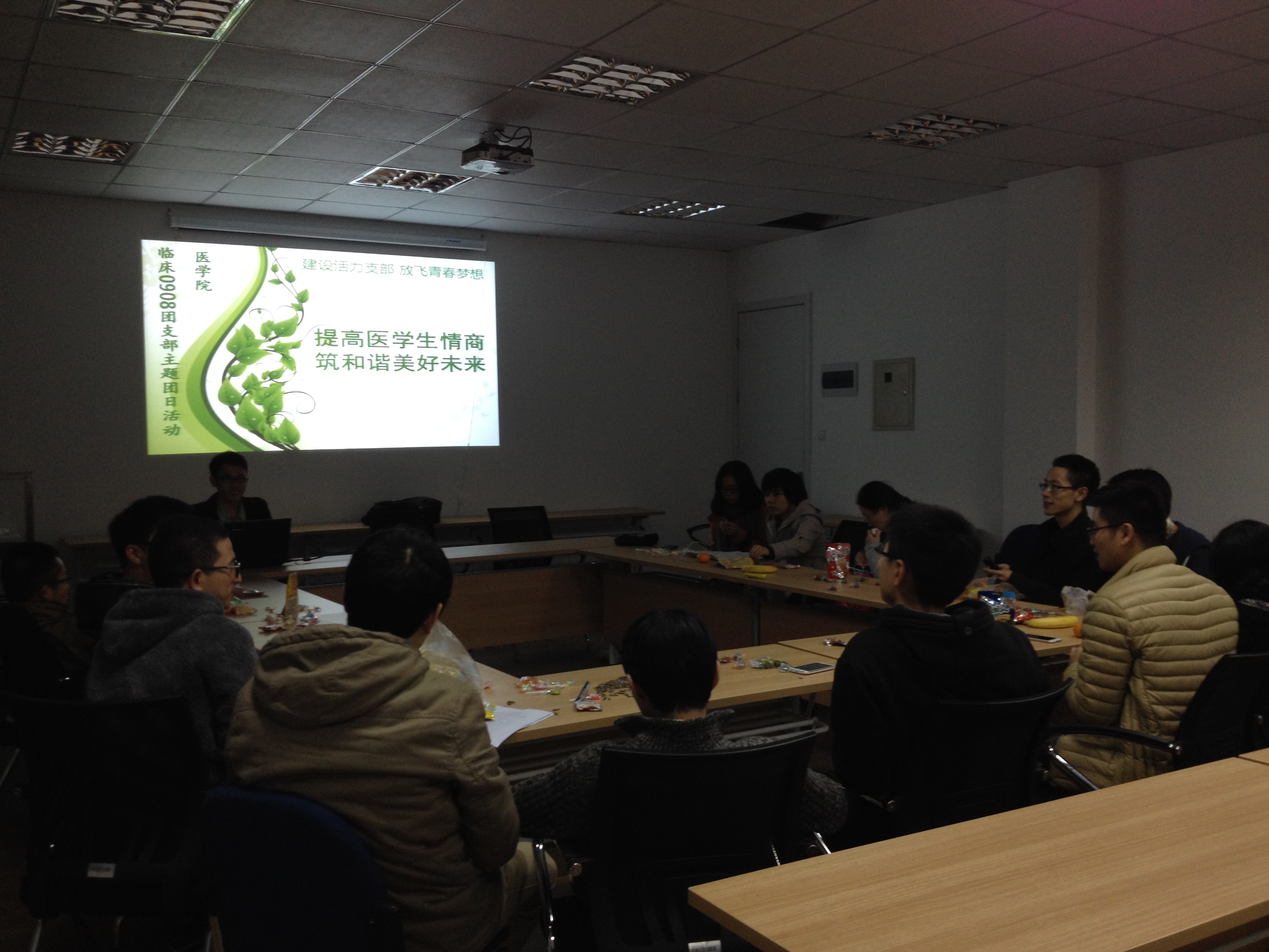 2014年11月28日,临床0908团支部在浙江大学华家池校区中心大楼524举办了以“提高医学生情商,筑和谐美好未来”为主题的沙龙,积极响应校团委以“建设活力支部,放飞青春梦想”为主题的“基层团组织建设月”活动。活动得到了同学们的积极参与,热烈讨论,互相之间的深入交流增进了支部成员间的了解,同时也对提高支部成员的情商有所裨益。