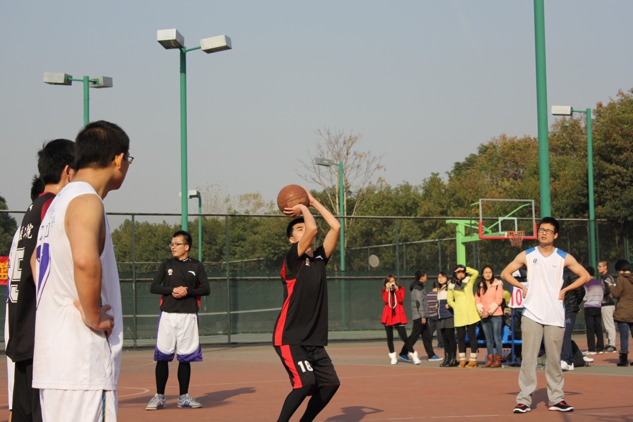 虽然是在冬日,但篮球赛却也燃烧着每个在球场的人。球员们自信勇敢,全然没有冷风下瑟瑟发抖的孱弱形象,咬紧每个球,努力守住球和赢球。比赛友谊第一,对手是最好的朋友。球赛免不了相互摩擦碰撞,双方也能相互理解。在13级本科生与14级本科生比赛中,两只今年新加盟联赛的球队都有不俗表现。13级队员们配合默契,主力球员陈开冲击力不容小觑,善技巧,熟练帅气地控制篮球。14级新生组成的球队虽然战败,但球场上少年意气风发,后生可畏。一队员在比赛过程中撞向计数台,看出他深陷比赛,无法自拔,努力打篮球如此,虽败犹荣。赛后球员们继续练球,双方队员们相互交谈,分享经验。
