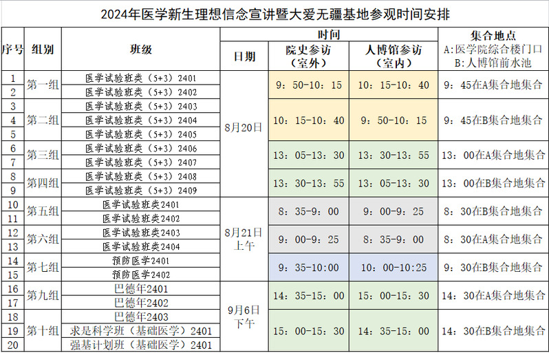 关于组织2024年医学新生理想信念教育暨“大爱无疆”思政教育基地参观的通知(更新9月6日安排)