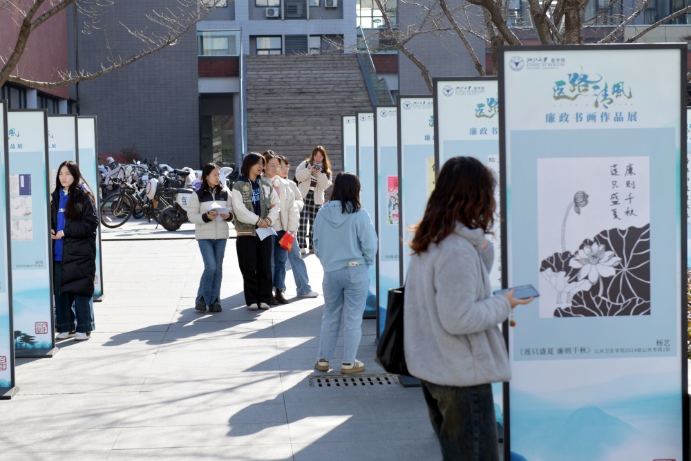本次展览由医学院纪委主办,前期面向医学院广大师生征集廉政书画主题的作品征集,邀请专家评审出获奖作品(获奖名单附后),并汇集了附属医院推荐的优秀作品,累计展出80余件,涵盖了书法、国画、漫画、海报等多种艺术形式,每一幅作品都以其独特的艺术语言,表达了对医学教育管理、医疗卫生行业廉洁自律的深刻理解和崇高敬意。